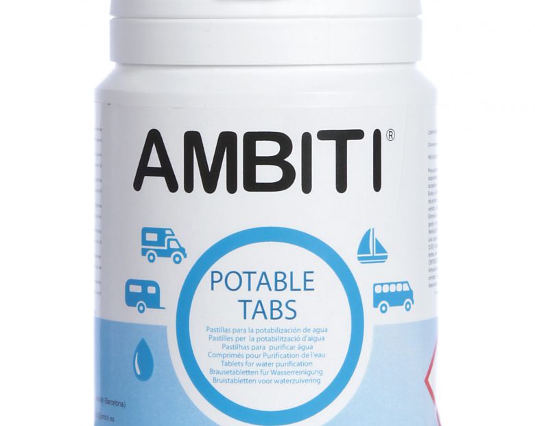 Las plastilas efervescentes Ambiti PotableTabs, son ideales para la potabilización del agua del depósito de la Autocaravana, caravana o camper siendo comprimidos de cloro de rápida disolución, que eliminan las bacterias, virus, esporas y hongos, evitando a su vez la formación de algas.