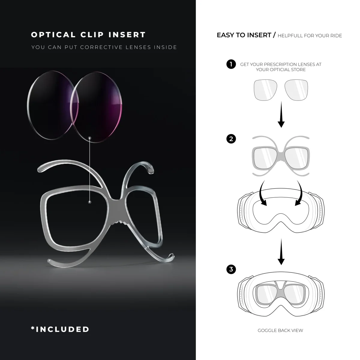 - Cinta Anti-Slip Strap para una perfecta fijación de las gafas al casco.