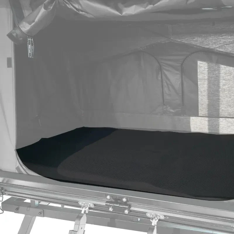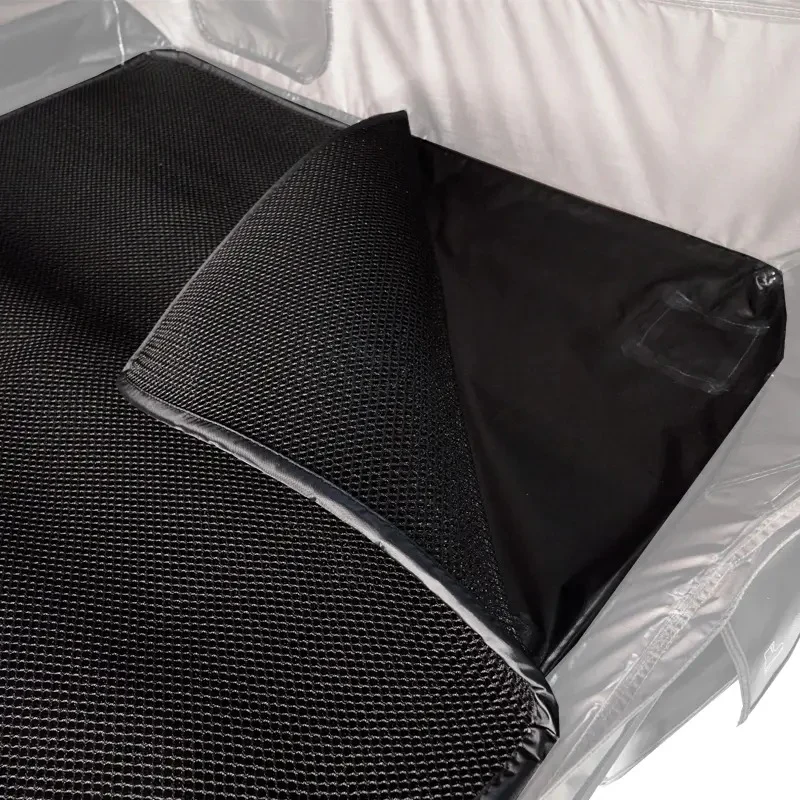 La malla 3D anticondensación de Wild Land está diseñada para colocarse bajo el colchón en tu tienda de techo, mejorando la ventilación y evitando la acumulación de humedad en el interior.