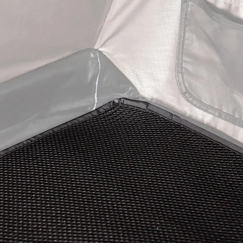 Su estructura interna de celdillas crea una cámara de aire que favorece la circulación y reduce significativamente la formación de condensación tanto en los laterales como en la base de la tienda.