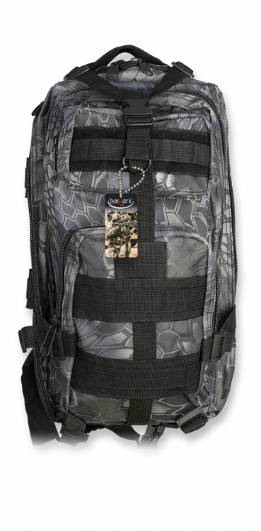 Mochila Barbaric de 30 litros de capacidad y estilo táctico polivalente. Una mochila para usar en todas las actividades del día a día como ir al gimnasio, senderismo, viajes y todo lo que se nos pueda ocurrir.