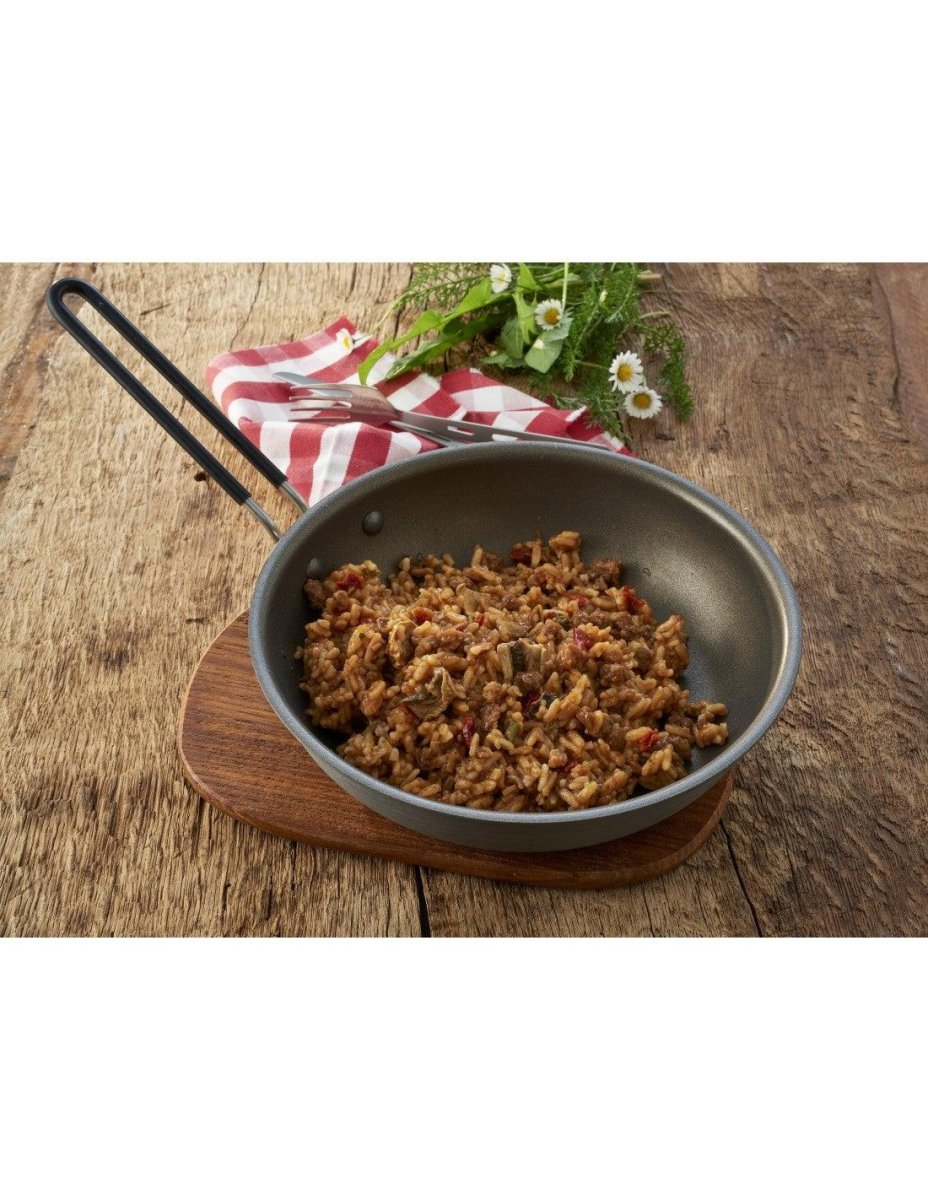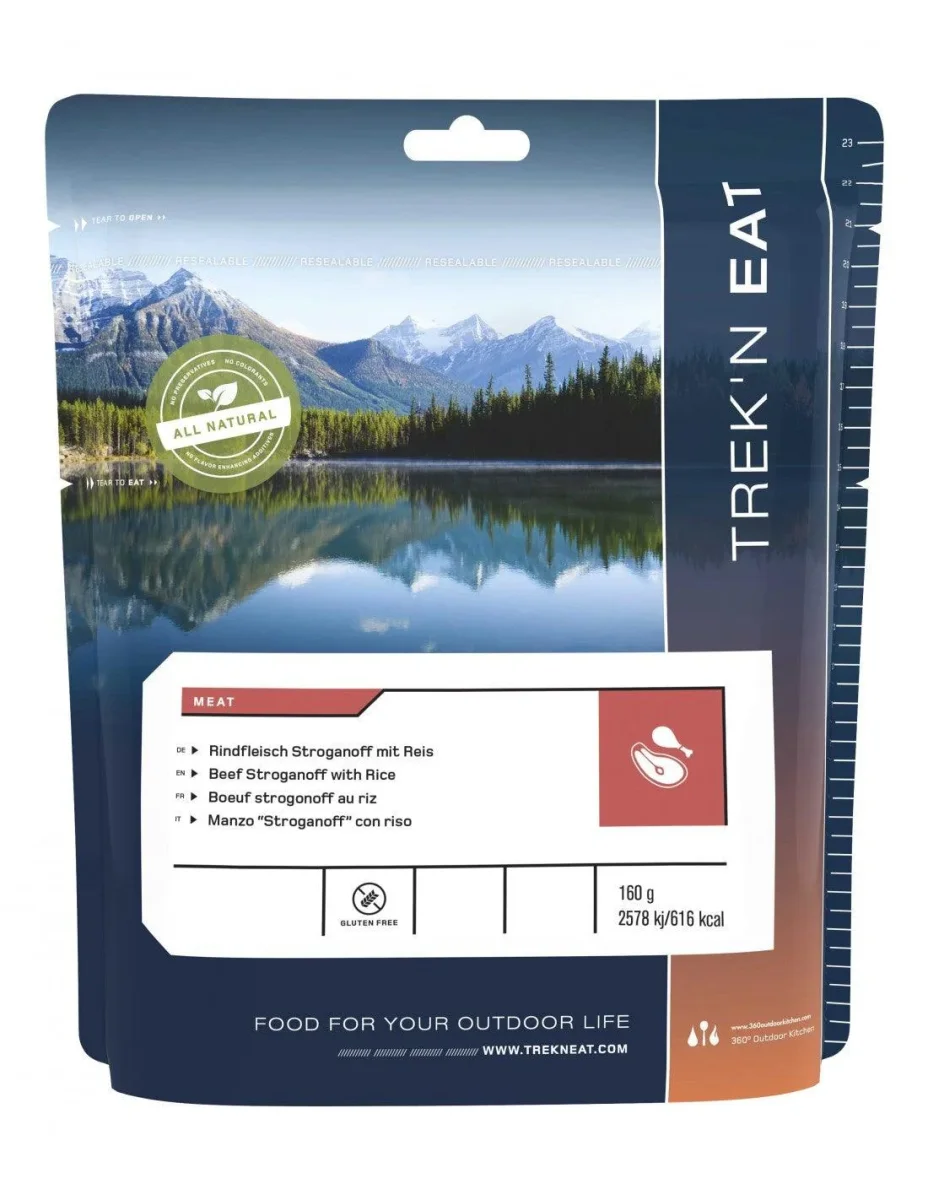 Nutritivo plato liofilizado de Ternera Stroganoff con arroz, de rápida y muy fácil preparación. Ideal para llevar en nuestras aventuras o salidas al medio natural, pero sin privarnos de una deliciosa comida.