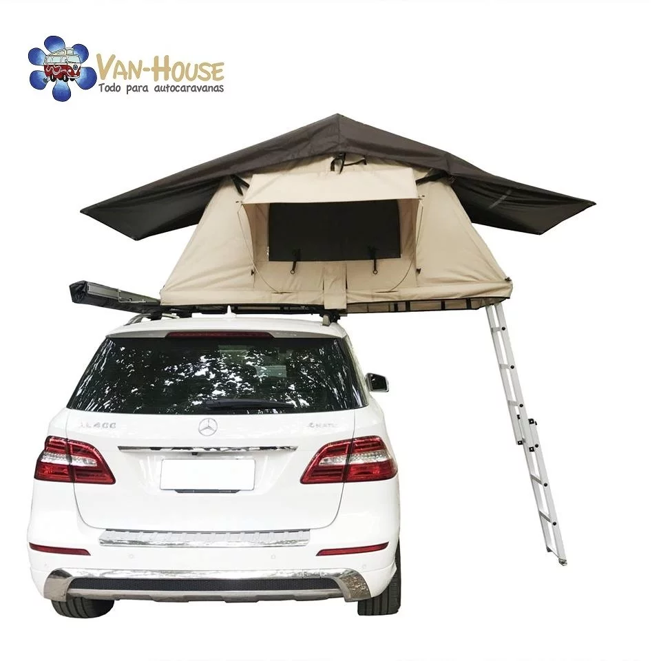 Bisagras y pernos de acero inoxidable. Costuras selladas. Estructura de aluminio. Tejidos con recubrimiento impermeable de alta calidad. El cuerpo principal de la tienda de techo es de algodón de poliéster, lo que garantiza la ventilación.
